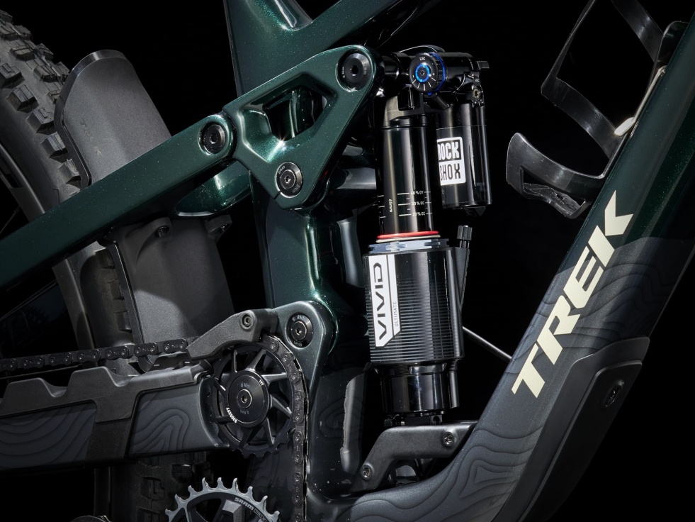 Odpružený rám z karbonu OCLV pro horská kola s vysoko umístěným čepem a vnitřním úložným prostorem. 170mm zdvih vpředu i vzadu, vidlice RockShox ZEB Select+ s pružinou DebonAir a tlumičem Charger 3 RC2 a zadní tlumič RockShox Super Deluxe Select+. Bezdrátový pohon SRAM X0 Eagle AXS vám dopřeje plynulé řazení i v záběru a teleskopická sedlovka Bontrager Line vás nebude omezovat v pohybu. Univerzální karbonová kola Bontrager Line Elite 30 ve velikosti 29 palců vpředu a 27,5 palce vzadu umožňují použití bezdušových plášťů, jsou osazeny náboji Rapid Drive a pomohou vám zvládnout jakýkoli terén.