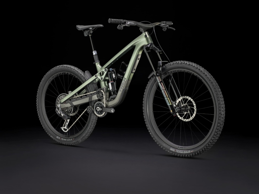 Odpružený rám z karbonu OCLV pro horská kola s vysoko umístěným čepem a vnitřním úložným prostorem. 170mm zdvih vpředu i vzadu, vidlice RockShox ZEB Select+ s pružinou DebonAir a tlumičem Charger 3 RC2 a zadní tlumič RockShox Super Deluxe Select+. Bezdrátový pohon SRAM XX Eagle AXS vám dopřeje plynulé řazení i v záběru a teleskopická sedlovka Bontrager Line vás nebude omezovat v pohybu. Univerzální karbonová kola Bontrager Line Elite 30 ve velikosti 29 palců vpředu a 27,5 palce vzadu umožňují použití bezdušových plášťů, jsou osazeny náboji Rapid Drive a pomohou vám zvládnout jakýkoli terén.