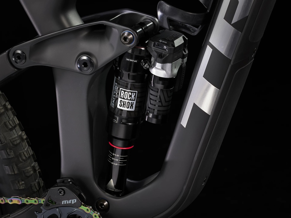 Rám z karbonu OCLV pro horská kola, zdvih 160 mm, tlumič RockShox Super Deluxe Ultimate s vylepšeným tlumením Thru Shaft, vidlici RockShox ZEB Ultimate s mimořádně robustními 38mm sloupky a technologii Flight Attendant s automatickým nastavováním odpružení. Bezdrátový 12rychlostní pohon SRAM XX1 Eagle, řídítka s integrovaným představcem Bontrager RSL, karbonová kola Line Pro 30 se 108zubým nábojem Rapid Drive pro okamžité zrychlení v případě potřeby.