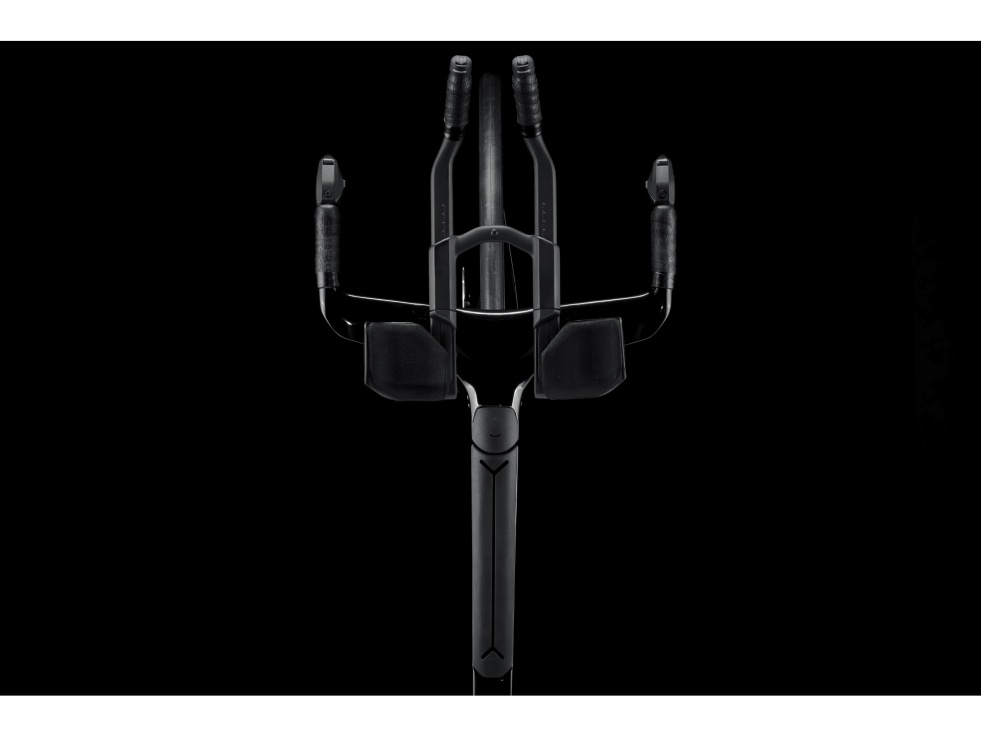 Nesmírně lehký rám z karbonu OCLV řady 800, aerodynamicky tvarované trubky Kammtail Virtual Foil (KVF) snižující odpor vzduchu, karbonová vidlice Speed Concept, nerovnosti tlumící prvek IsoSpeed, integrovaný úložný prostor na výživu, hydrataci a sadu na opravu defektu, 12rychlostní bezdrátový elektronický pohon Shimano Dura-Ace/Ultegra Di2, plně integrovaná řídítka a představec, triatlonové sedlo Bontrager Hilo Comp s agresivní aerodynamickou pozicí, spolehlivé kotoučové brzdy a kola Bontrager Aeolus Pro 51 z karbonu OCLV.
