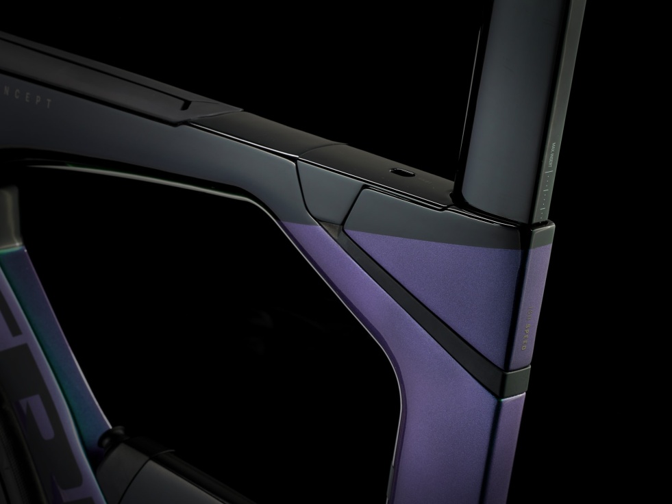 Lehoučký rám z karbonu OCLV řady 800, aerodynamický profil trubek Kammtail Virtual Foil (KVF) snižující odpor vzduchu, celokarbonová vidlice Speed Concept, nerovnosti tlumící prvek IsoSpeed, integrovaný úložný prostor na výživu, hydrataci a sadu na opravdu defektu, 12rychlostní bezdrátový elektronický pohon SRAM Force AXS D2 s řazením SRAM AXS Clics, wattmetr Force AXS, plně integrovaná řídítka a představec, sedlo Bontrager Hilo Comp určené na triatlon s agresivní aerodynamickou pozicí, spolehlivé kotoučové brzdy a kola Bontrager Aeolus Pro 51 z karbonu OCLV.