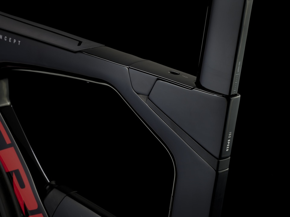 Lehoučký rám z karbonu OCLV řady 800, aerodynamický profil trubek Kammtail Virtual Foil (KVF) snižující odpor vzduchu, celokarbonová vidlice Speed Concept, nerovnosti tlumící prvek IsoSpeed, integrovaný úložný prostor na výživu, hydrataci a sadu na opravdu defektu, 12rychlostní bezdrátový elektronický pohon SRAM Force AXS D2 s řazením SRAM AXS Clics, wattmetr Force AXS, plně integrovaná řídítka a představec, sedlo Bontrager Hilo Comp určené na triatlon s agresivní aerodynamickou pozicí, spolehlivé kotoučové brzdy a kola Bontrager Aeolus Pro 51 z karbonu OCLV.
