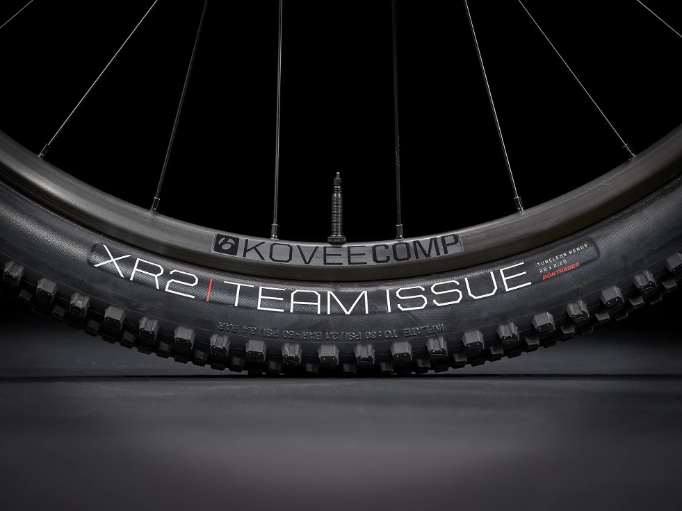 | Plášť | Bontrager XR2 Team Issue, umožňující použití bezdušových plášťů, bočnice Inner Strength, aramidová patka, 120 tpi, 29 × 2,20 palce. |