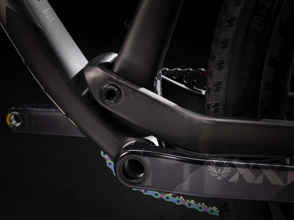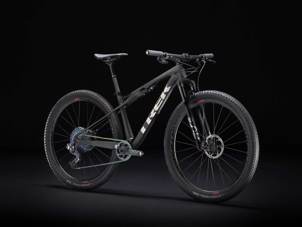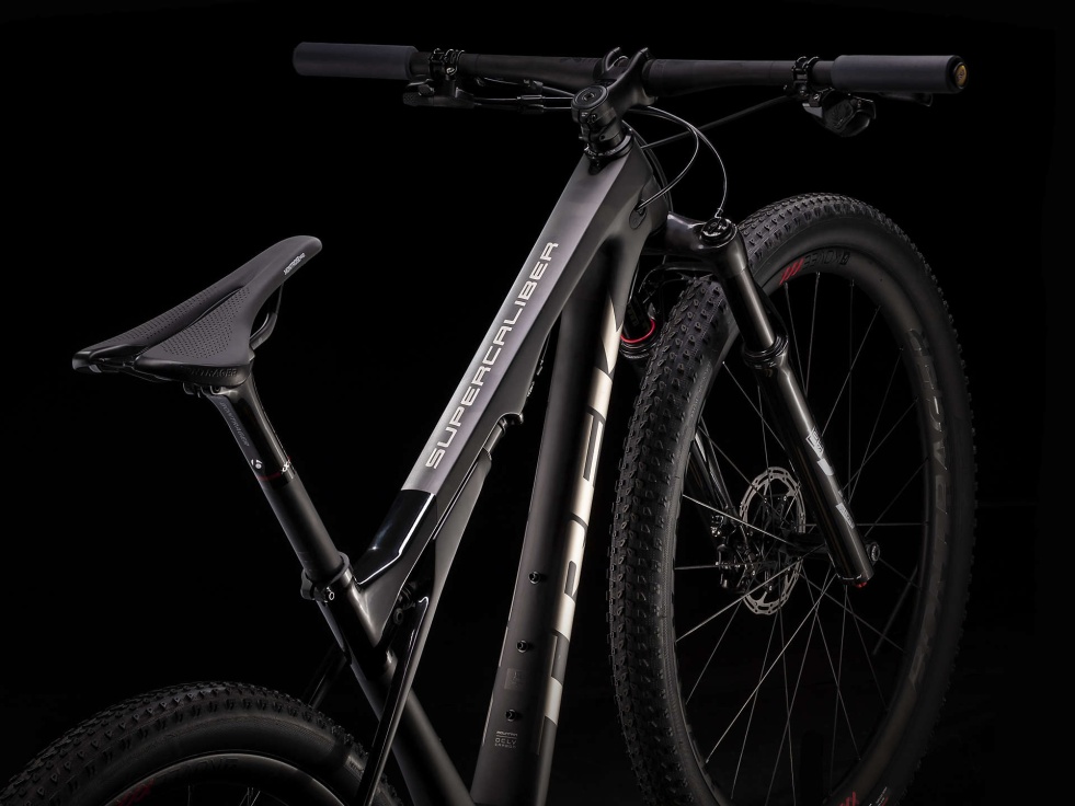 Ultralehký celokarbonový OCLV rám pro horská kola s 60mm zdvihem, 100mm vidlicí RockShox SID Ultimate s pružinou Solo Air a tlumením Motion Control a exkluzivní lehký tlumič IsoStrut FOX Factory značky Trek výlučně navržený pro kola Supercaliber. Zcela bezdrátový elektronický pohon SRAM XX1 Eagle AXS 1x12, kola Bontrager Kovee XXX 30 z karbonu OCLV pro horská kola s 54zubým zadním nábojem DT Swiss pro rychlou aktivaci, dvojí zamykání odpružení TwistLoc z řídítek, hydraulické kotoučové brzdy SRAM Level Ultimate s karbonovými páčkami, sedlovka Bontrager XXX z karbonu OCLV a řídítka Bontrager Kovee XXX z karbonu OCLV.