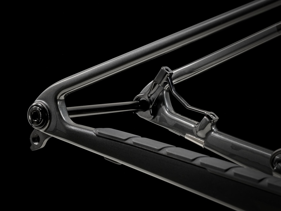 Lehoučký rám SLR z karbonu HM OCLV pro horská kola s moderní XC geometrií. 110mm přední odpružení díky vidlici RockShox SID s pružinou DebonAir a tlumičem Rush RL a zadní 80mm odpružení IsoStrut tlumiče RockShox SIDLuxe, vše se vzdáleným zamykáním. Zcela bezdrátová 12rychlostní elektronická převodovka SRAM GX AXS, karbonová kola Bontrager Kovee Elite 23, kombinace řídítek a představce Bontrager RSL z karbonu, teleskopická sedlovka Bontrager Line a čtyřpístkové hydraulické kotoučové brzdy SRAM Level Bronze.