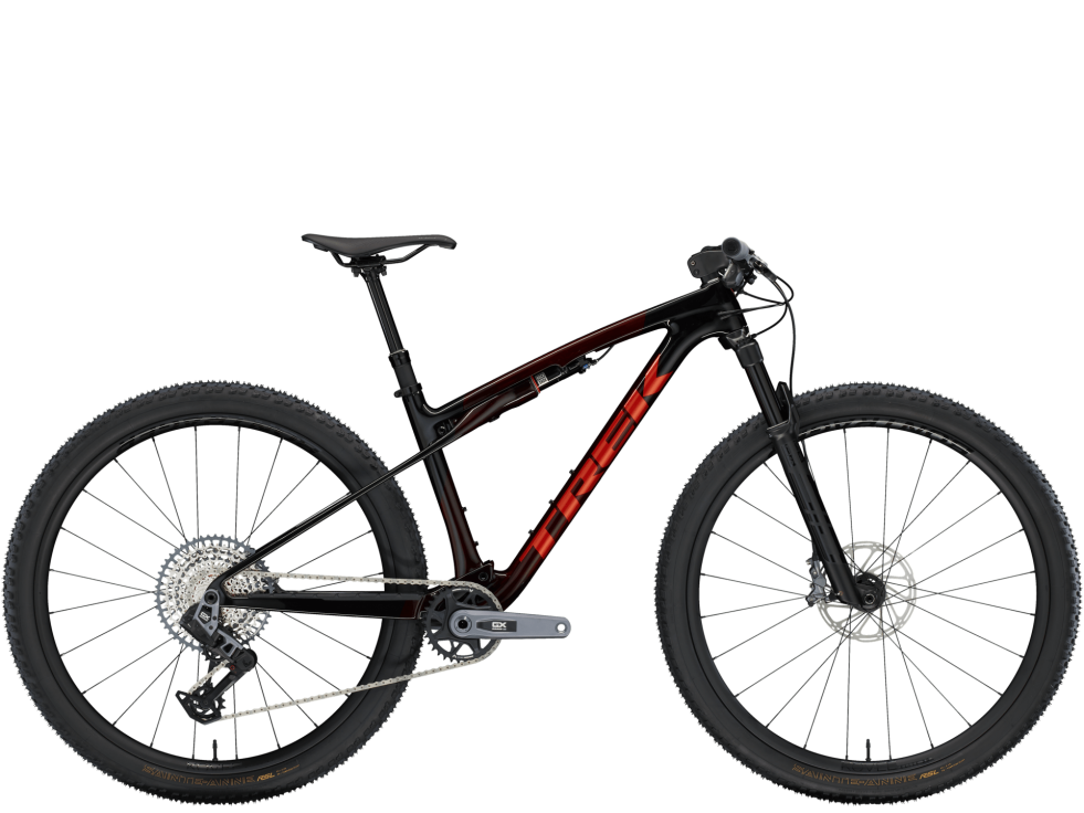 Lehoučký rám SLR z karbonu HM OCLV pro horská kola s moderní XC geometrií. 110mm přední odpružení díky vidlici RockShox SID s pružinou DebonAir a tlumičem Rush RL a zadní 80mm odpružení IsoStrut tlumiče RockShox SIDLuxe, vše se vzdáleným zamykáním. Zcela bezdrátová 12rychlostní elektronická převodovka SRAM GX AXS, karbonová kola Bontrager Kovee Elite 23, kombinace řídítek a představce Bontrager RSL z karbonu, teleskopická sedlovka Bontrager Line a čtyřpístkové hydraulické kotoučové brzdy SRAM Level Bronze.