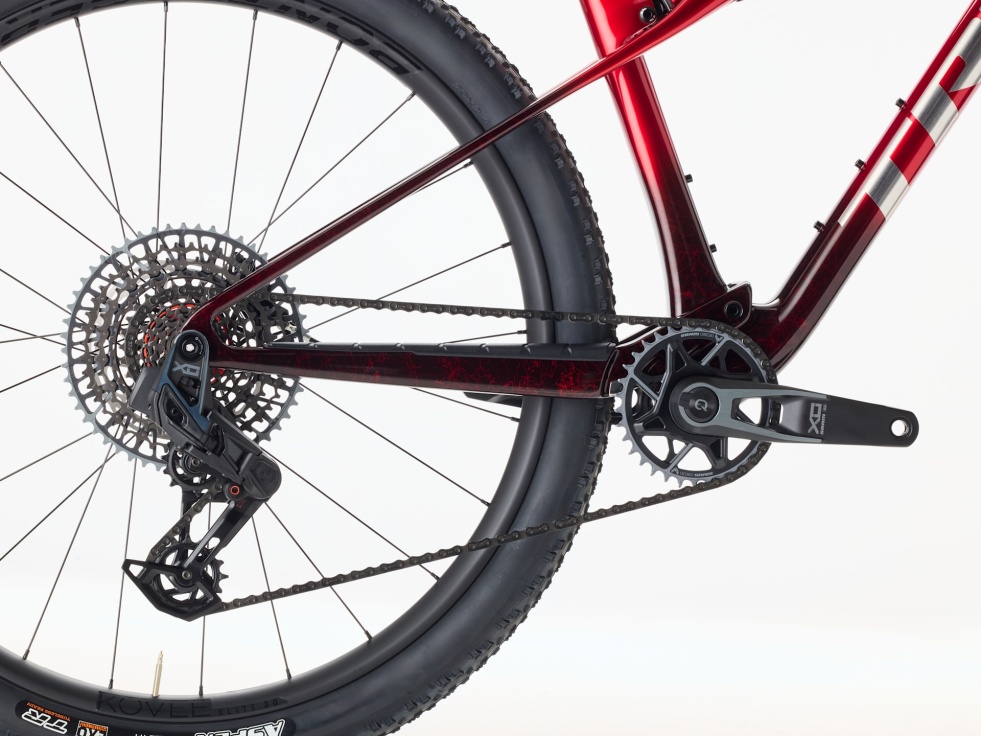 | Zadní kolo | Bontrager Kovee Elite 30, karbon OCLV pro horská kola, možnost použití bezdušových plášťů, Rapid Drive, Boost148, 12mm pevná osa, 29 palců |