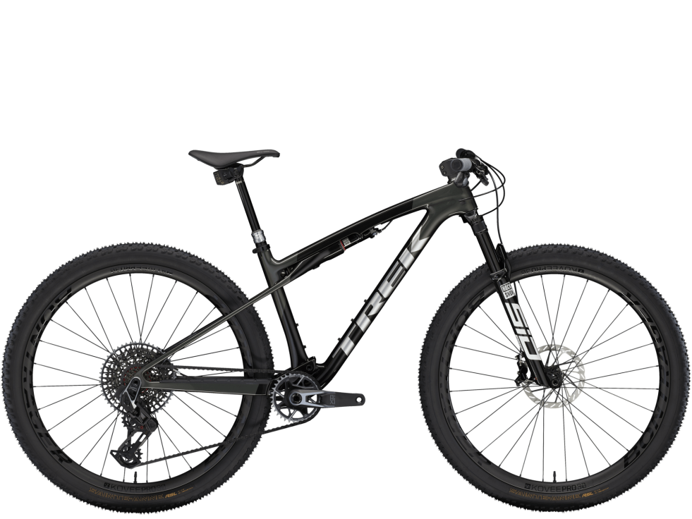 Lehoučký rám SLR z karbonu HM OCLV pro horská kola s moderní XC geometrií. 110mm přední odpružení díky vidlici RockShox SID Ultimate s pružinou DebonAir a tlumičem Charger Race Day a zadní 80mm odpružení IsoStrut tlumiče RockShox SIDLuxe, vše se vzdáleným zamykáním. Zcela bezdrátová 12rychlostní elektronická převodovka SRAM X0 AXS, karbonová kola Bontrager Kovee Elite 23, kombinace řídítek a představce Bontrager RSL z karbonu, teleskopická sedlovka Bontrager Line a čtyřpístkové hydraulické kotoučové brzdy SRAM Level Bronze.