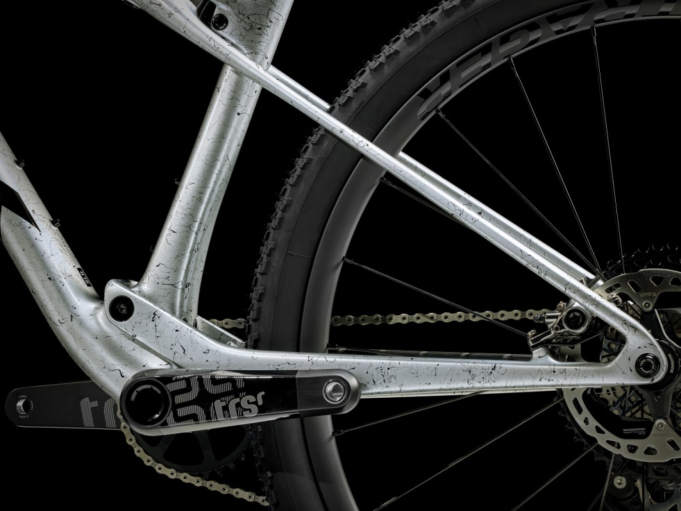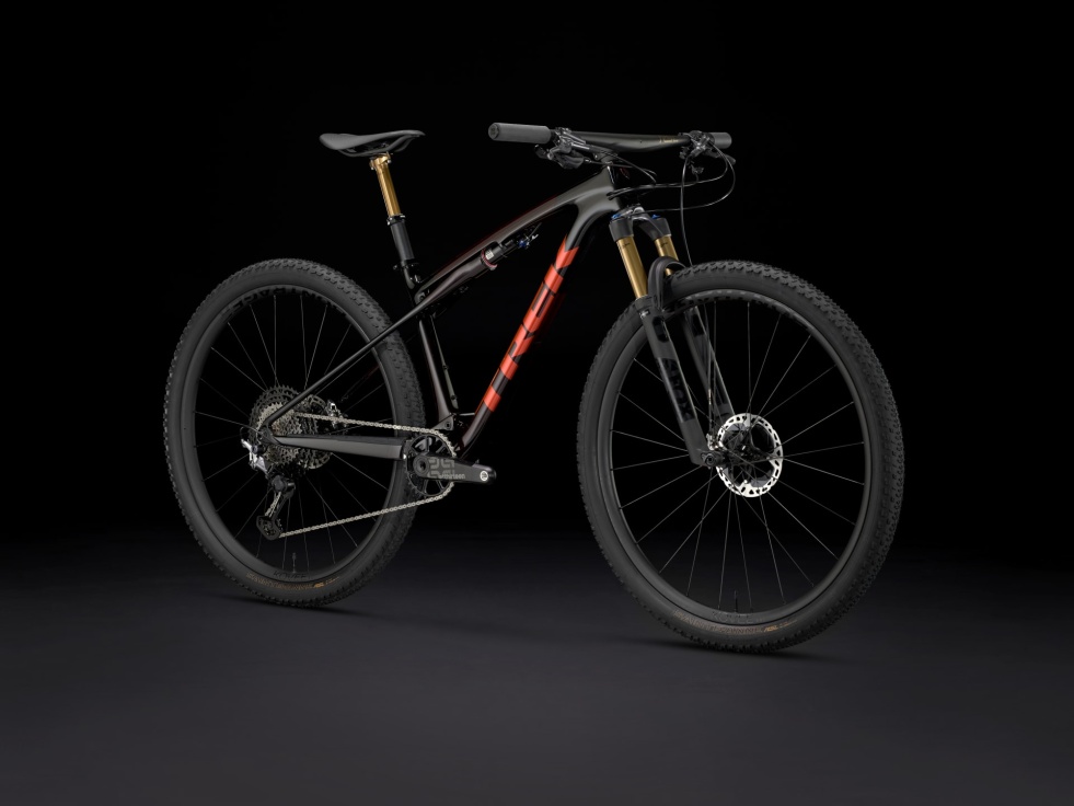 Lehoučký rám SLR z karbonu HM OCLV pro horská kola s moderní XC geometrií. 110mm přední odpružení díky vidlici Fox Performance 34 step-cast se vzduchovou pružinou Float EVOL, tlumič GRIP 2 s dvojím vzdáleným zamykáním a zadní 80mm odpružení IsoStrut tlumiče RockShox SIDLuxe. Zcela bezdrátová 12rychlostní elektronická převodovka SRAM X0 AXS, karbonová kola Bontrager Kovee Elite 23, kombinace řídítek a představce Bontrager RSL z karbonu, teleskopická sedlovka Bontrager Line a čtyřpístkové hydraulické kotoučové brzdy SRAM Level Bronze.