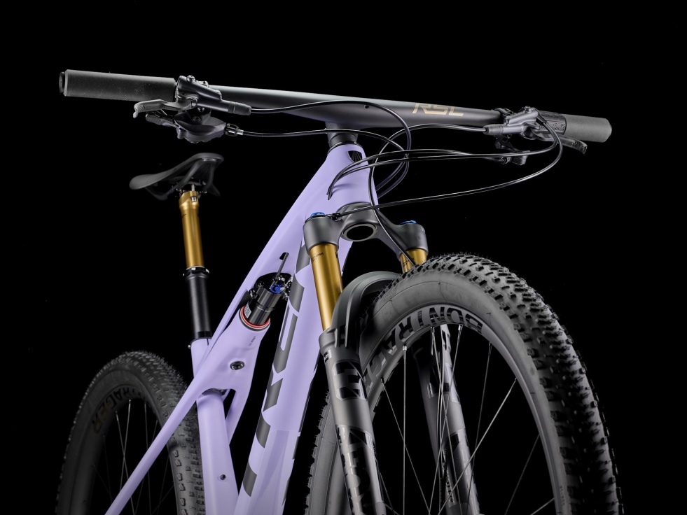 Lehoučký rám SLR z karbonu HM OCLV pro horská kola s moderní XC geometrií. 110mm přední odpružení díky vidlici Fox Factory 34 step-cast se vzduchovou pružinou Float EVOL, tlumič GRIP 2, dvojí vzdálené zamykání a zadní 80mm odpružení IsoStrut tlumiče RockShox SIDLuxe. 12rychlostní pohon Shimano XTR, karbonová kola Bontrager Kovee RSL, kombinace řídítek a představce Bontrager RSL z karbonu, teleskopická sedlovka Fox Transfer SL a hydraulické kotoučové brzdy Shimano XTR M9100.