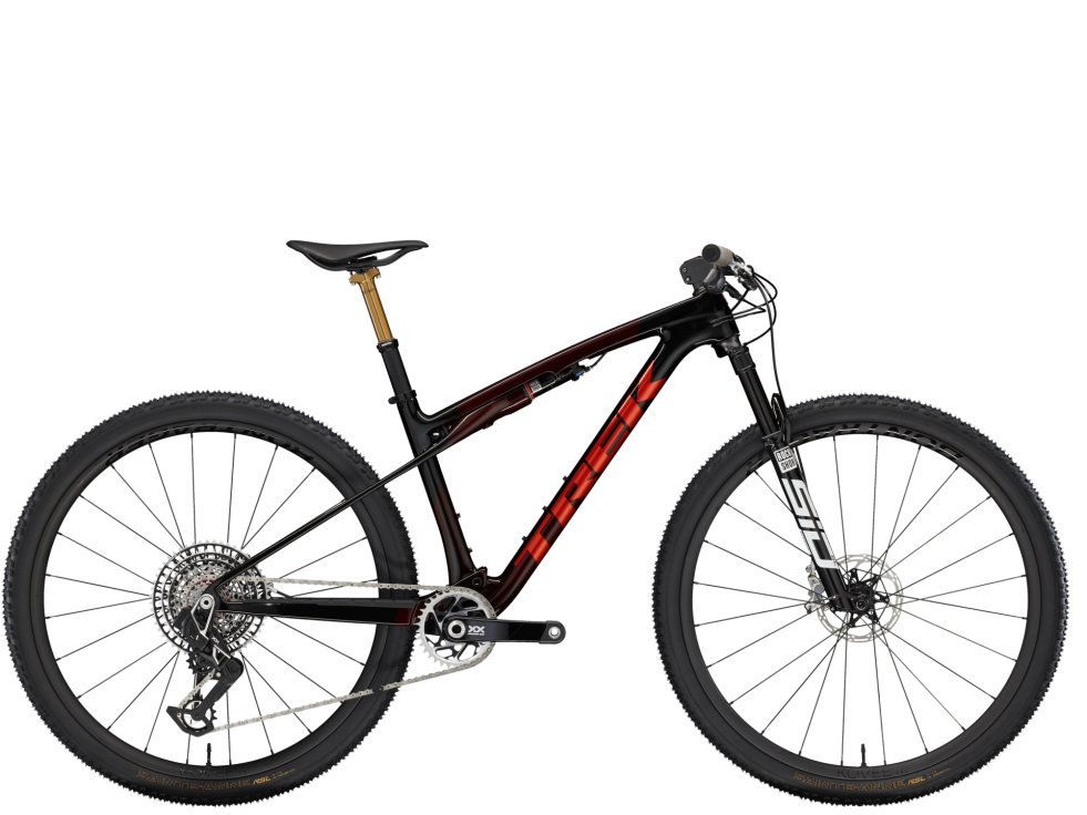 Lehoučký rám SLR z karbonu HM OCLV pro horská kola s moderní XC geometrií. 110mm přední odpružení díky vidlici RockShox SID Ultimate s pružinou DebonAir a tlumičem Charger Race Day a zadní 80mm odpružení IsoStrut tlumiče RockShox SIDLuxe, vše se vzdáleným zamykáním. Lehoučká, zcela bezdrátová 12rychlostní elektronická převodovka SRAM XX SL AXS, karbonová kola Bontrager Kovee Elite 23, kombinace řídítek a představce Bontrager RSL z karbonu, teleskopická sedlovka Bontrager Line a 4pístkové hydraulické kotoučové brzdy SRAM Level Bronze.