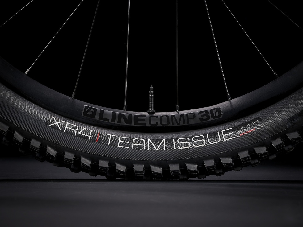 Plášť Bontrager XR4 Team Issue, možnost použití bezdušových plášťů, bočnice Inner Strength, aramidová patka, 120 tpi, 29 × 2,40 palce.