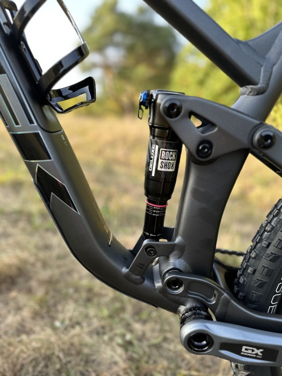 Lehký hliníkový rám s vnitřním úložným prostorem, 130mm vidlice RockShox Pike s citlivým odpružením DebonAir, tlumič RockShox Deluxe Ultimate RCT se zadním zdvihem 120 mm a bezdrátová 12rychlostní převodovka SRAM GX Eagle AXS. Dále 4pístkové brzdy pro jisté sjezdy, kola Bontrager Line Comp 30 zcela připravená na bezdušové pláště včetně těsnicího tmelu a teleskopická sedlovka Bontrager Line.