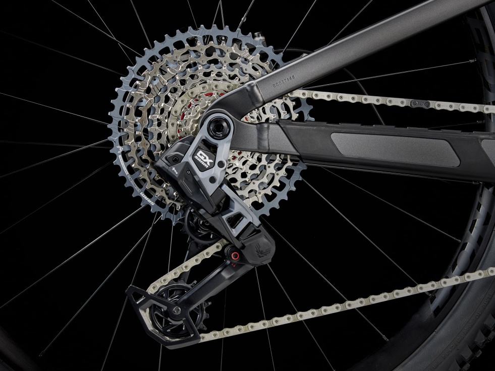 Lehký hliníkový rám s vnitřním úložným prostorem, 130mm vidlice RockShox Pike s citlivým odpružením DebonAir, tlumič RockShox Deluxe Ultimate RCT se zadním zdvihem 120 mm a bezdrátová 12rychlostní převodovka SRAM GX Eagle AXS. Dále 4pístkové brzdy pro jisté sjezdy, kola Bontrager Line Comp 30 zcela připravená na bezdušové pláště včetně těsnicího tmelu a teleskopická sedlovka Bontrager Line.