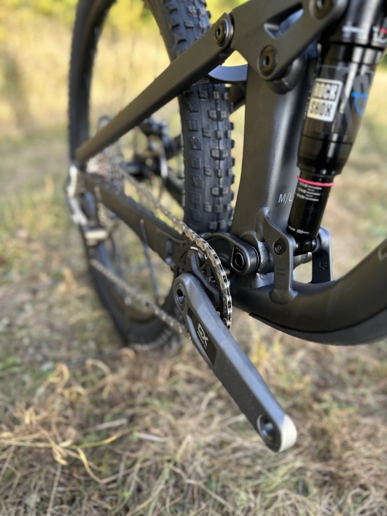 Lehký hliníkový rám s vnitřním úložným prostorem, 130mm vidlice RockShox Pike s citlivým odpružením DebonAir, tlumič RockShox Deluxe Ultimate RCT se zadním zdvihem 120 mm a bezdrátová 12rychlostní převodovka SRAM GX Eagle AXS. Dále 4pístkové brzdy pro jisté sjezdy, kola Bontrager Line Comp 30 zcela připravená na bezdušové pláště včetně těsnicího tmelu a teleskopická sedlovka Bontrager Line.