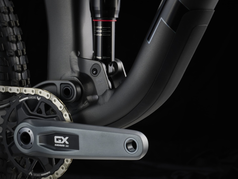 Lehký hliníkový rám s vnitřním úložným prostorem, 130mm vidlice RockShox Pike s citlivým odpružením DebonAir, tlumič RockShox Deluxe Ultimate RCT se zadním zdvihem 120 mm a bezdrátová 12rychlostní převodovka SRAM GX Eagle AXS. Dále 4pístkové brzdy pro jisté sjezdy, kola Bontrager Line Comp 30 zcela připravená na bezdušové pláště včetně těsnicího tmelu a teleskopická sedlovka Bontrager Line.