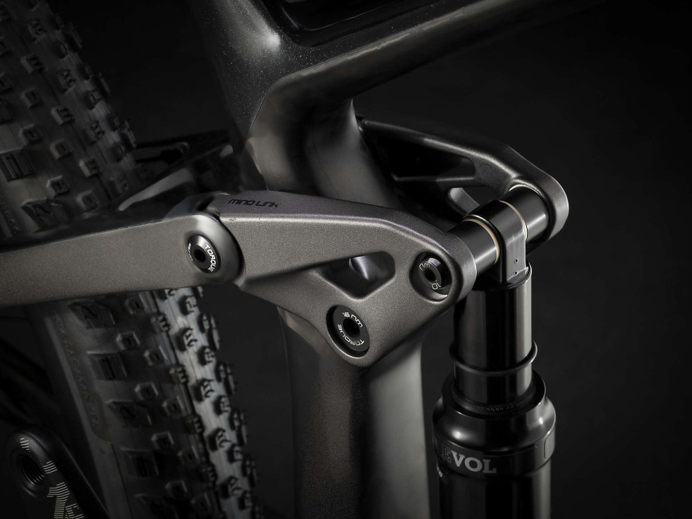 Celokarbonový OCLV rám pro horská kola, špičková 120mm vidlice Fox Performance 34 Step-Cast Float s tlumením GRIP, 115mm zadní zdvih s tlumičem Fox Performance Float a 1x12 řazení SRAM GX Eagle s klikami Truvativ Descendant 7k DUB. Široká karbonová kola Bontrager Kovee Elite 30 se 54zubým nábojem Rapid Drive pro rychlou aktivaci, zamykání odpružení z řídítek TwistLoc, teleskopická sedlovka Bontrager Line Elite, karbonová řídítka Bontrager Kovee Pro OCLV a špičkové hydraulické kotoučové brzdy Shimano SLX.