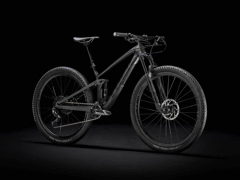 Celokarbonový OCLV rám pro horská kola, špičková 120mm vidlice Fox Performance 34 Step-Cast Float s tlumením GRIP, 115mm zadní zdvih s tlumičem Fox Performance Float a 1x12 řazení SRAM GX Eagle s klikami Truvativ Descendant 7k DUB. Široká karbonová kola Bontrager Kovee Elite 30 se 54zubým nábojem Rapid Drive pro rychlou aktivaci, zamykání odpružení z řídítek TwistLoc, teleskopická sedlovka Bontrager Line Elite, karbonová řídítka Bontrager Kovee Pro OCLV a špičkové hydraulické kotoučové brzdy Shimano SLX.