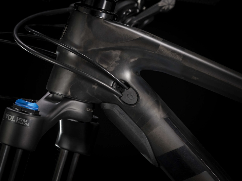 Celokarbonový OCLV rám pro horská kola, špičková 120mm vidlice Fox Performance 34 Step-Cast Float s tlumením GRIP, 115mm zadní zdvih s tlumičem Fox Performance Float a 1x12 řazení SRAM GX Eagle s klikami Truvativ Descendant 7k DUB. Široká karbonová kola Bontrager Kovee Elite 30 se 54zubým nábojem Rapid Drive pro rychlou aktivaci, zamykání odpružení z řídítek TwistLoc, teleskopická sedlovka Bontrager Line Elite, karbonová řídítka Bontrager Kovee Pro OCLV a špičkové hydraulické kotoučové brzdy Shimano SLX.