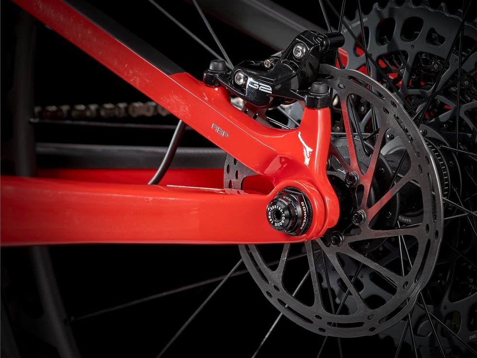 Lehký a tuhý celokarbonový rám, vidlici RockShox SID Select+ se zdvihem 120 mm, tlumič RockShox SID Luxe Ultimate se zdvihem 115 mm a novou sadu řazení SRAM GX Eagle s lehčím převodem do stoupání (52 zubů). Pak ještě široká karbonová kola Bontrager Kovee Elite 30 s 54zubým nábojem Rapid Drive s rychlou aktivací, teleskopickou sedlovku Bontrager Line Elite a karbonová řídítka.