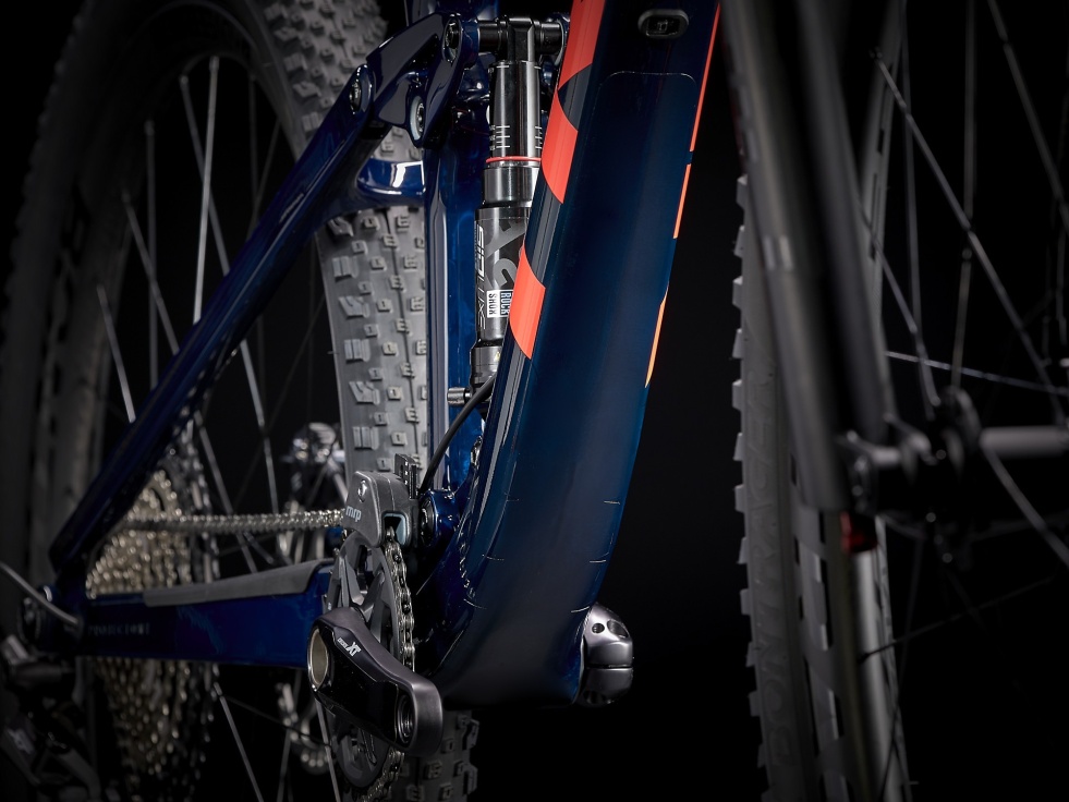 Lehký a tuhý celokarbonový rám, vidlici RockShox SID Select+ se zdvihem 120 mm, tlumič RockShox SID Luxe Ultimate se zdvihem 115 mm a novou sadu řazení Shimano XT 1x12. Pak ještě široká karbonová kola Bontrager Kovee Elite 30 s 54zubým nábojem Rapid Drive s rychlou aktivací, teleskopickou sedlovku Bontrager Line Elite a karbonová řídítka.