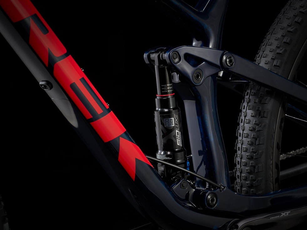 Lehký a tuhý celokarbonový rám, vidlici RockShox SID Select+ se zdvihem 120 mm, tlumič RockShox SID Luxe Ultimate se zdvihem 115 mm a novou sadu řazení Shimano XT 1x12. Pak ještě široká karbonová kola Bontrager Kovee Elite 30 s 54zubým nábojem Rapid Drive s rychlou aktivací, teleskopickou sedlovku Bontrager Line Elite a karbonová řídítka.