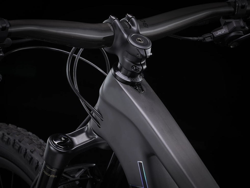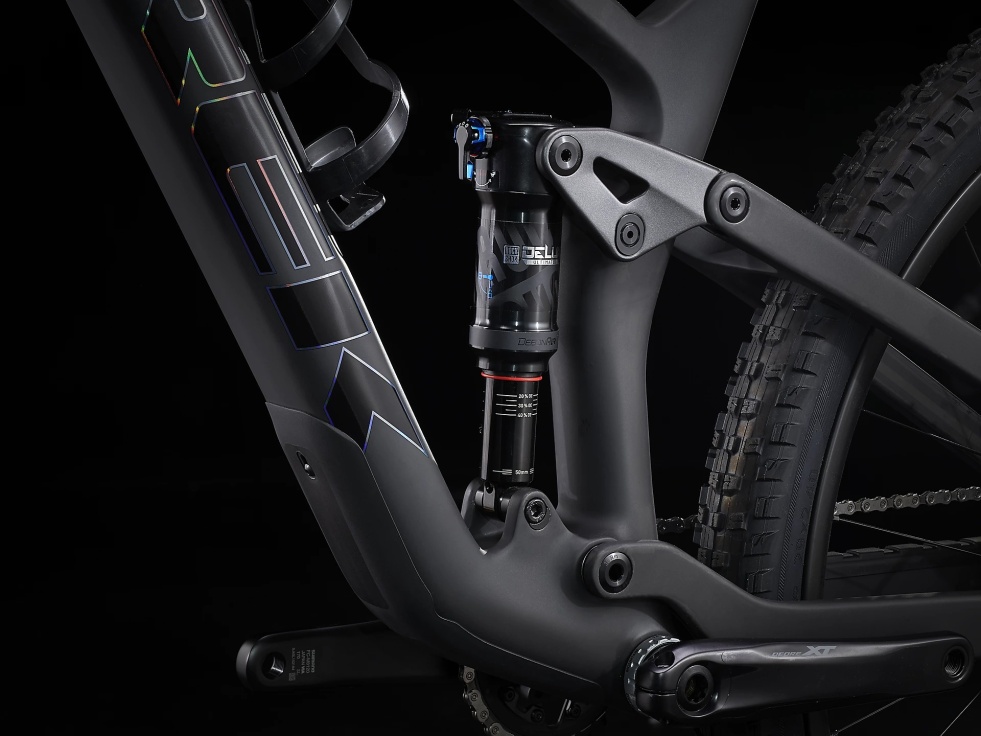 Lehký a tuhý celokarbonový rám, 120mm vidlice RockShox SID Select+, zadní tlumič RockShox SID Luxe Ultimate se zdvihem 120 mm a nový pohon Shimano XT 1x12. Pak ještě široká karbonová kola Bontrager Line Elite 30 se 108zubým nábojem Rapid Drive pro okamžitou aktivaci, 4pístkové brzdy pro jisté sjezdy, teleskopická sedlovka Bontrager Line Elite a karbonová řídítka.