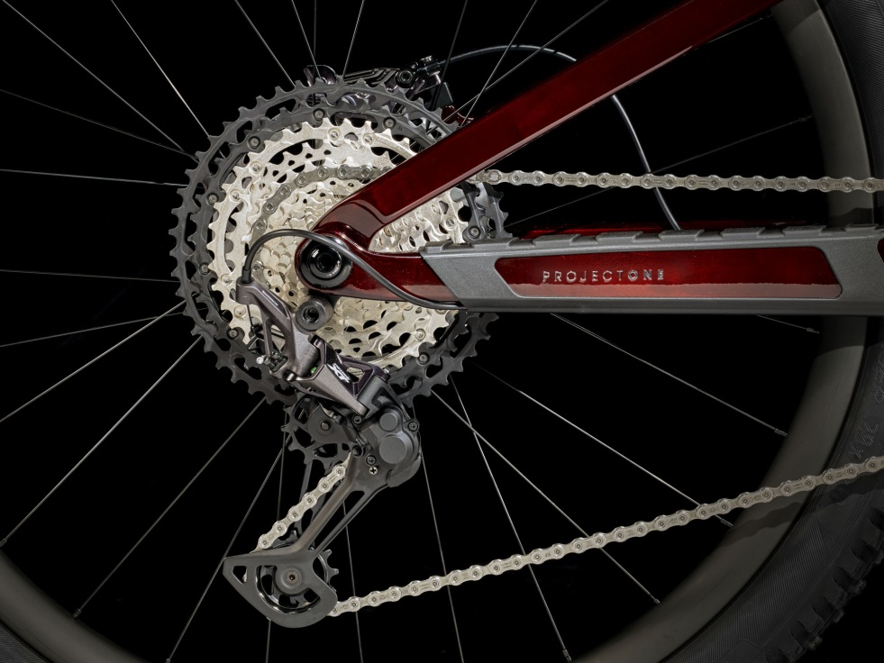 Lehký a tuhý celokarbonový rám, 130mm vidlice RockShox Pike Select+, zadní tlumič RockShox Deluxe Ultimate RCT se zdvihem 120 mm a nový pohon Shimano XT 1x12. Pak ještě široká karbonová kola Bontrager Line Elite 30 se 108zubým nábojem Rapid Drive pro okamžitou aktivaci, 4pístkové brzdy pro jisté sjezdy, teleskopická sedlovka Bontrager Line Elite a karbonová řídítka.
