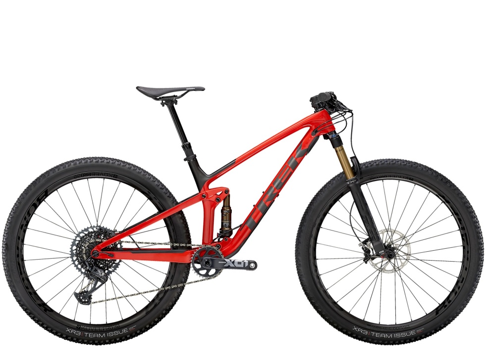 Lehký a tuhý celokarbonový rám, 120mm vidlici Fox Factory 34 Step-Cast, tlumič Fox Factory Float se zdvihem 115 mm a nové komponenty sady řazení SRAM X01 Eagle s extra lehkým převodem do stoupání (52 zubů). Dál ještě široká karbonová kola Bontrager Kovee Pro 30 se 108zubým nábojem Rapid Drive s okamžitou aktivací, zamykání předního i zadního odpružení z řídítek systémem Bontrager DropLock a spoustu karbonových dílů.