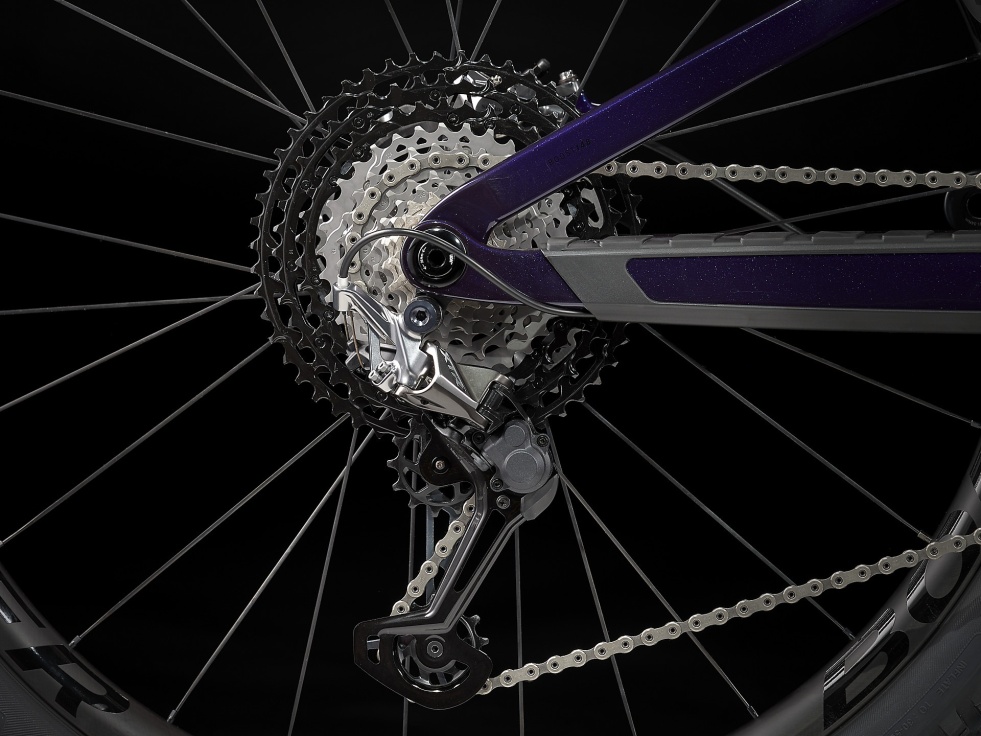 Lehký a tuhý celokarbonový rám, 130mm vidlice Fox Factory 34, tlumič Fox Factory Float se zadním zdvihem 120 mm a hladký a přesný pohon Shimano XTR 1x12. Dále široká karbonová kola Bontrager Line Pro 30 se 108zubým nábojem Rapid Drive s okamžitou aktivací a spoustu karbonových dílů.