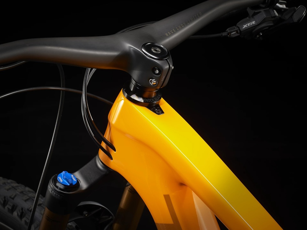 Lehký a tuhý celokarbonový rám, 130mm vidlice Fox Factory 34, tlumič Fox Factory Float se zadním zdvihem 120 mm a hladký a přesný pohon Shimano XTR 1x12. Dále široká karbonová kola Bontrager Line Pro 30 se 108zubým nábojem Rapid Drive s okamžitou aktivací a spoustu karbonových dílů.
