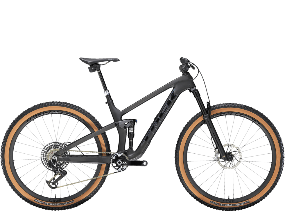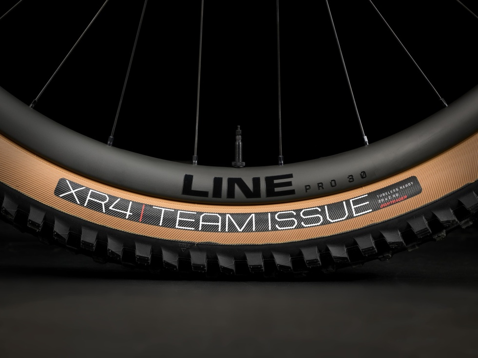 Lehký a tuhý rám z karbonu OCLV pro horská kola, 130mm vidlice RockShox Pike Ultimate s pružinou DebonAir a tlumení Charger 3 RC2, zadní tlumič RockShox Deluxe Ultimate RCT se zdvihem 120 mm a bezdrátová 12rychlostní sada SRAM XX AXS pro přímou montáž, která je nejen lehká, ale i přesná. Pak ještě široká karbonová kola Bontrager Line Elite 30 se 108zubým nábojem Rapid Drive pro okamžitou aktivaci, čtyřpístkové brzdy pro jisté sjezdy, teleskopická sedlovka RockShox Reverb AXS a kombinace řídítek a představce z karbonu.
