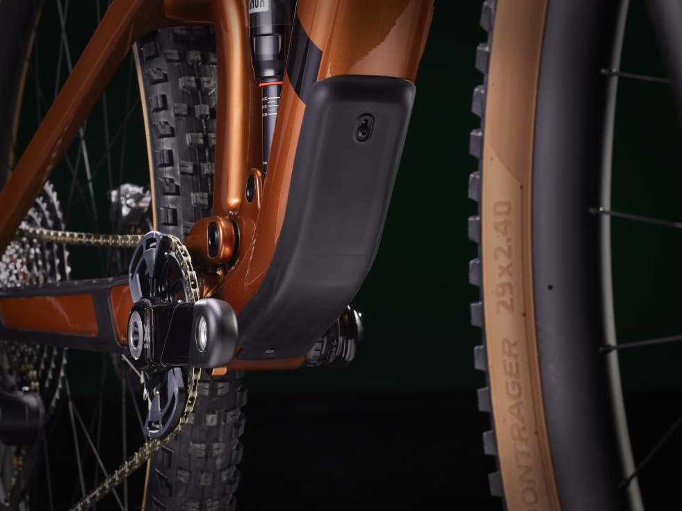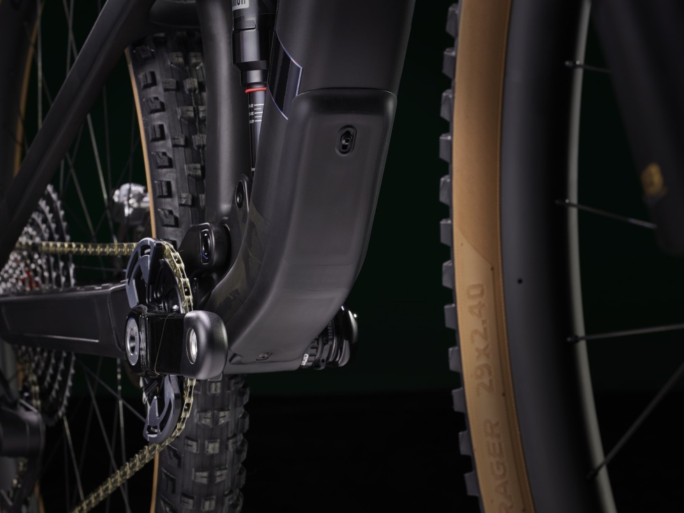 Lehký a tuhý rám z karbonu OCLV pro horská kola, 130mm vidlice RockShox Pike Ultimate s pružinou DebonAir a tlumení Charger 3 RC2, zadní tlumič RockShox Deluxe Ultimate RCT se zdvihem 120 mm a bezdrátová 12rychlostní sada SRAM XX AXS pro přímou montáž, která je nejen lehká, ale i přesná. Pak ještě široká karbonová kola Bontrager Line Elite 30 se 108zubým nábojem Rapid Drive pro okamžitou aktivaci, čtyřpístkové brzdy pro jisté sjezdy, teleskopická sedlovka RockShox Reverb AXS a kombinace řídítek a představce z karbonu.