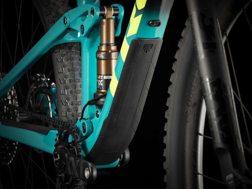 Celokarbonový OCLV rám pro horská kola, špičková 120mm vidlice Fox Factory 34 Step-Cast Float s tlumením GRIP, 115mm zadním zdvihem s tlumičem Fox Factory Float a 1x12 pohonem SRAM XX1 Eagle. Široká karbonová kola Bontrager Kovee Elite 30 se 108zubým nábojem Rapid Drive pro okamžitou aktivaci, zamykání odpružení z řídítek TwistLoc, teleskopická sedlovka Bontrager Line Elite, karbonová řídítka Bontrager Kovee Pro OCLV a brzdy SRAM Level Ultimate s karbonovými páčkami.