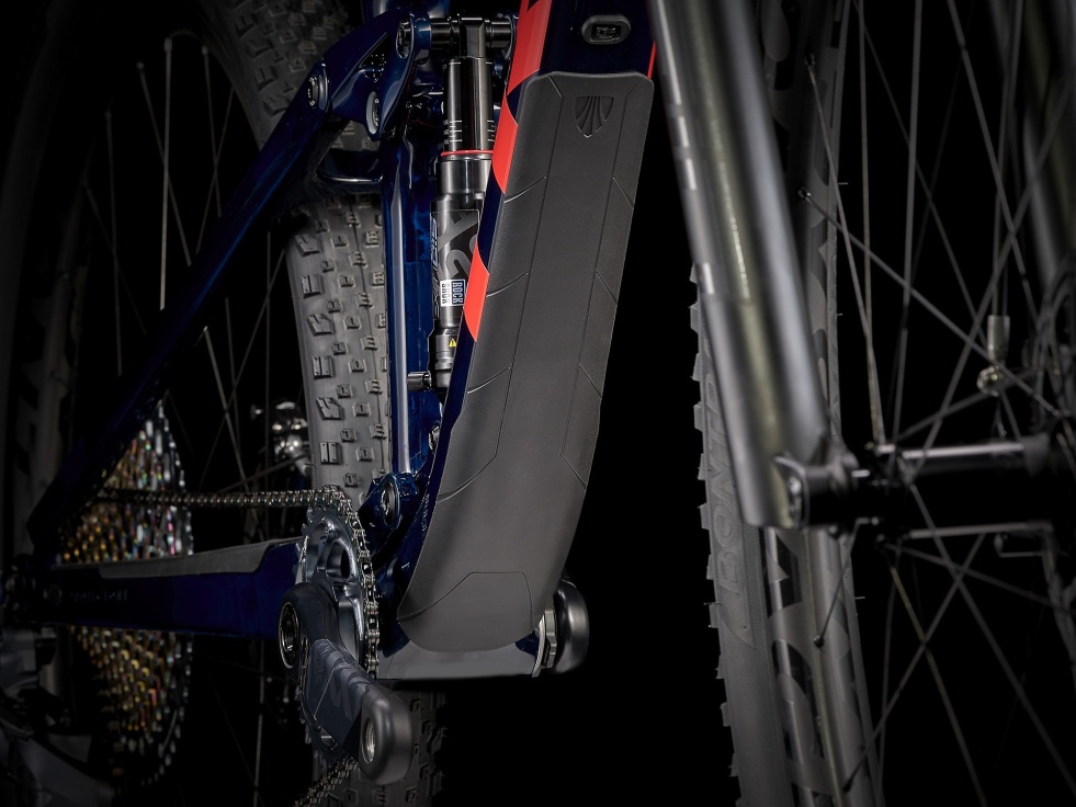 Celokarbonový rám, úžasně citlivou 120mm vidlici RockShox Pike Ultimate s tlumičem Charger 2 RC2 a širšími možnostmi doladění, zadní tlumič RockShox Deluxe Ultimate se zdvihem 115 mm a bezdrátovou elektronickou sadu řazení SRAM XX1 Eagle AXS. Dál ještě široká karbonová kola Bontrager Kovee Pro 30 se 108zubým nábojem Rapid Drive s okamžitou aktivací, bezdrátovou teleskopickou sedlovku RockShox Reverb AXS a brzdy SRAM Level Ultimate s karbonovými páčkami.