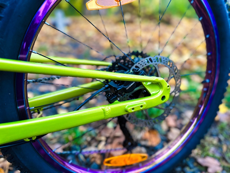 Rám z hliníku Alpha Silver s 20palcovými koly a širokými 2,4palcovými plášti s agresivním vzorkem, které se zakousnou do povrchu a jsou parádně přilnavé. 9rychlostní pohon 1x microSHIFT nabízí spoustu převodů a hydraulické kotoučové brzdy zaručují parádní brzdný výkon.