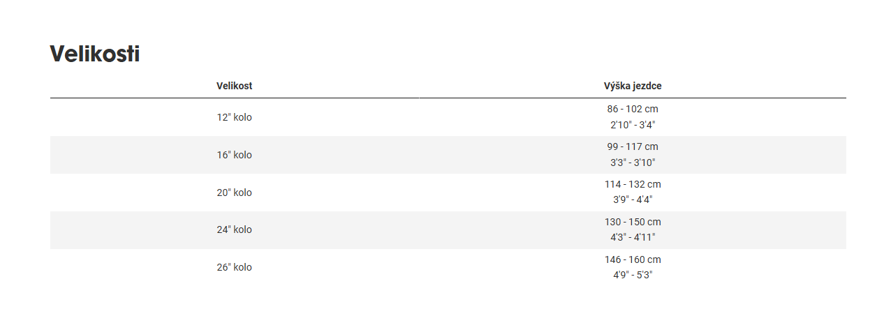 | Headset | : Velikost: 20" kolo Integrovaná, zapouzdřená středová ložiska. |