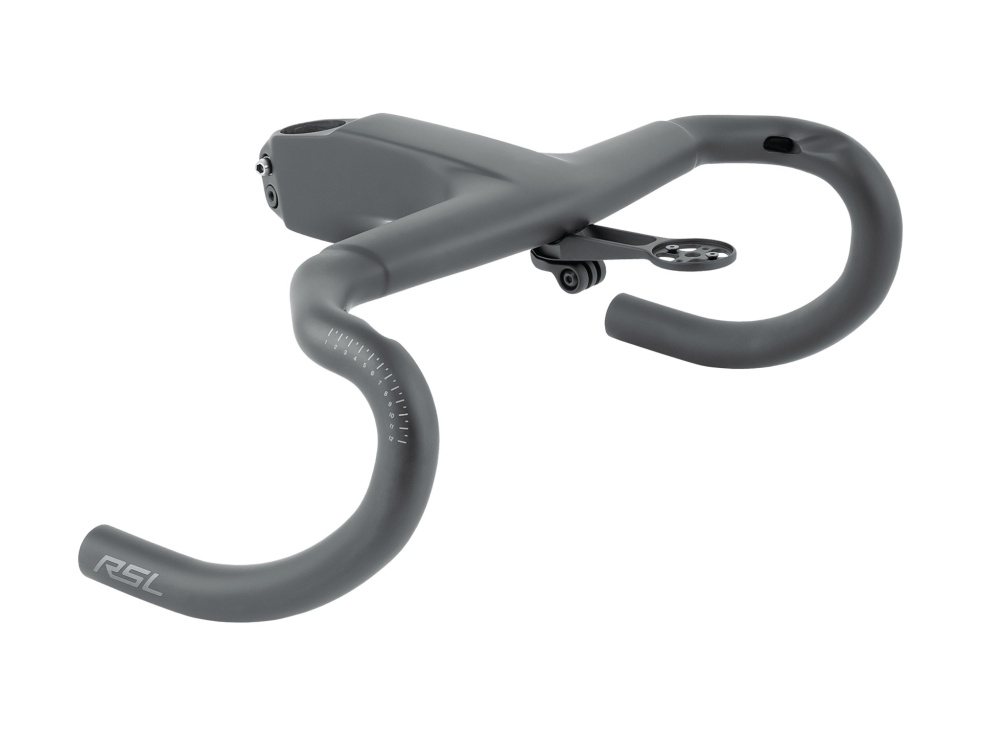 Elegantní integrace držáku světla a cyklopočítače na kombinaci řídítek a představce Trek Aero RSL.
